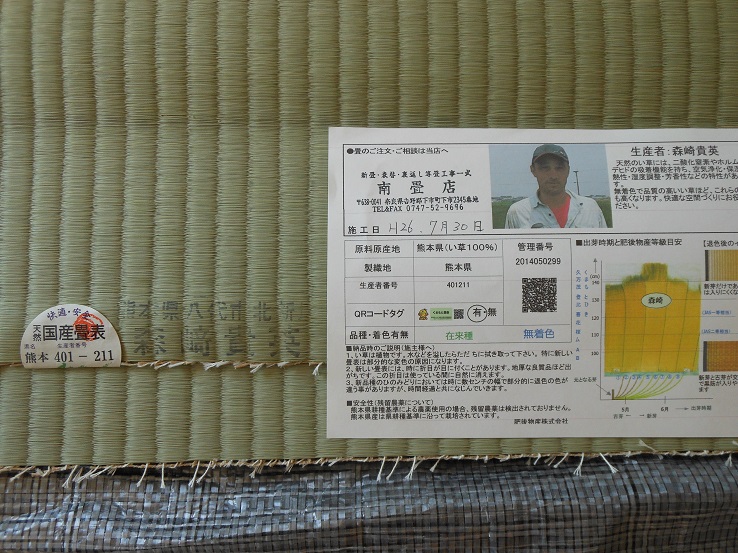 畳の張り替え・新畳など、畳を奈良県でお探しなら国産畳専門店で1級畳製作技能士の畳屋・南たたみ店にお任せ下さい!