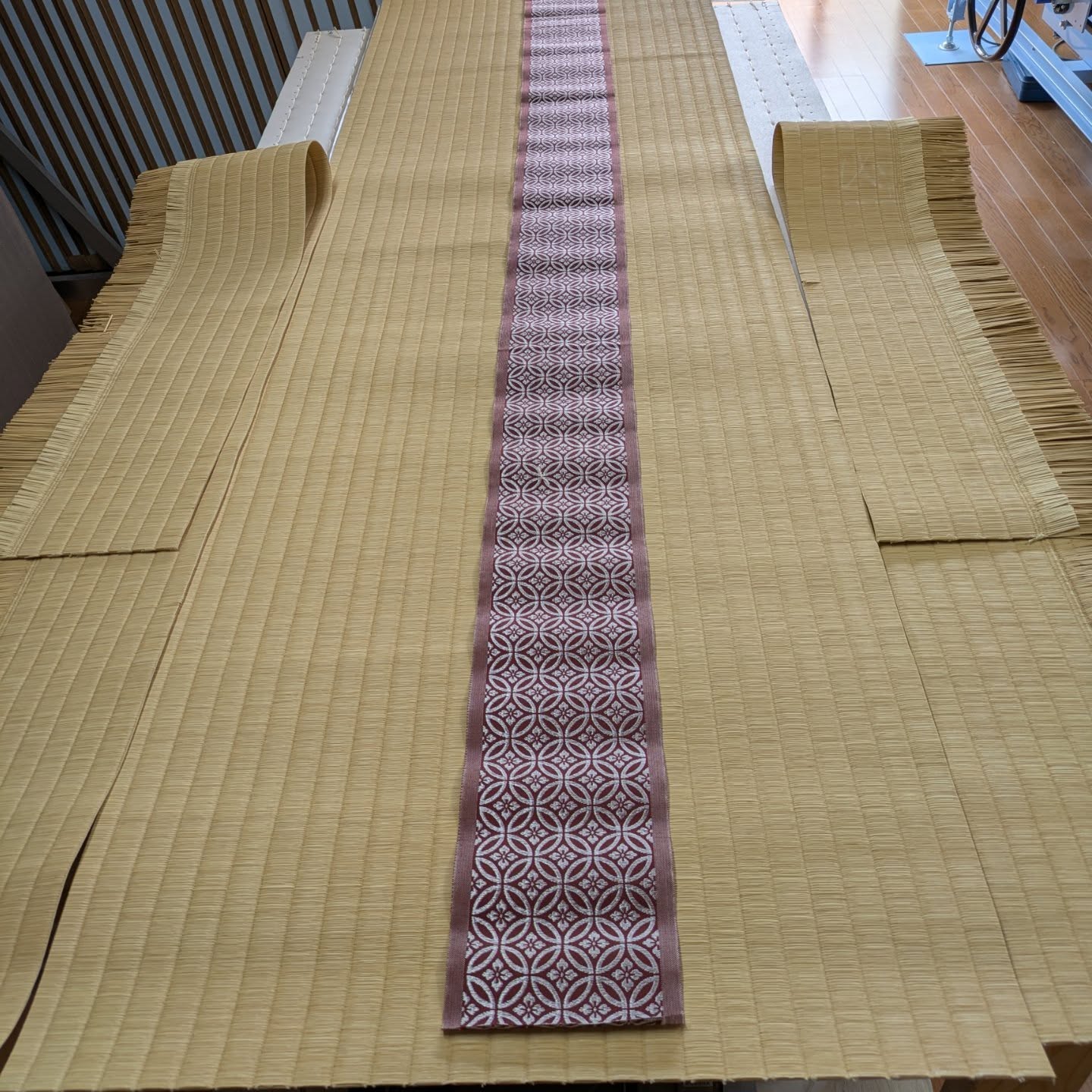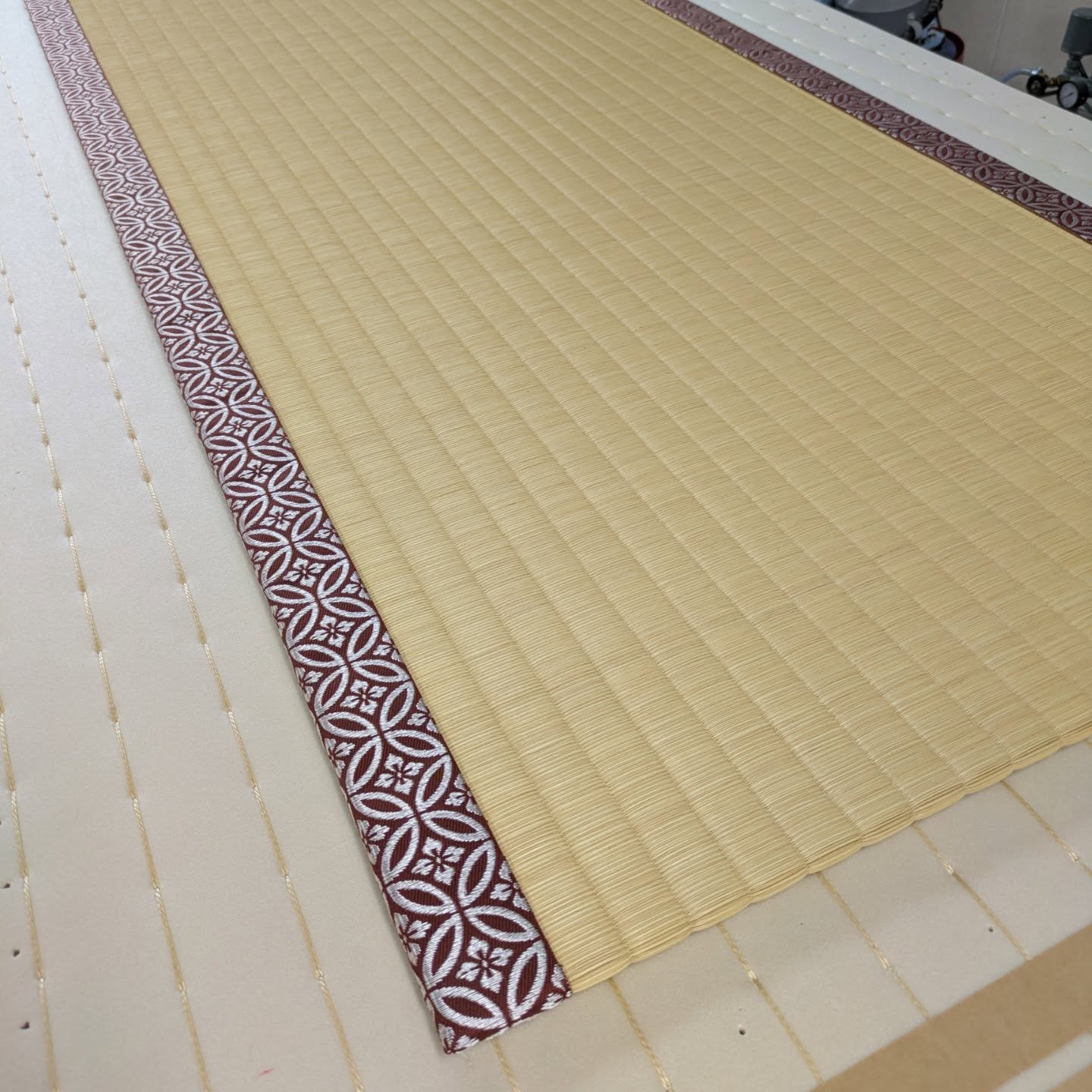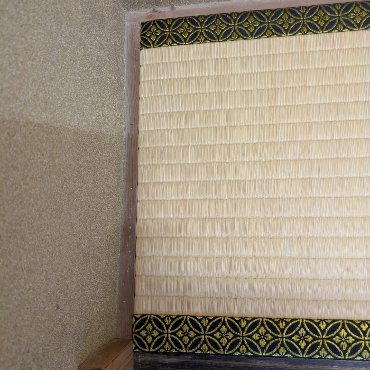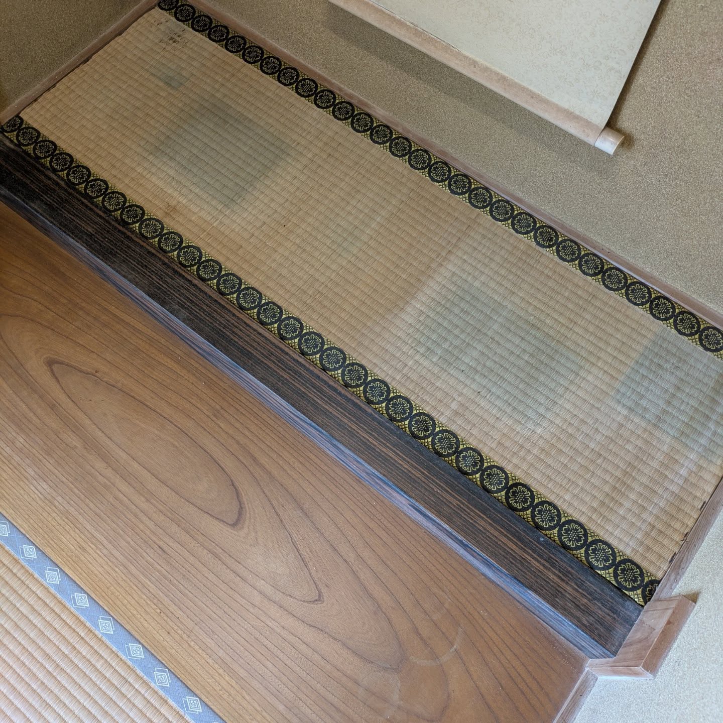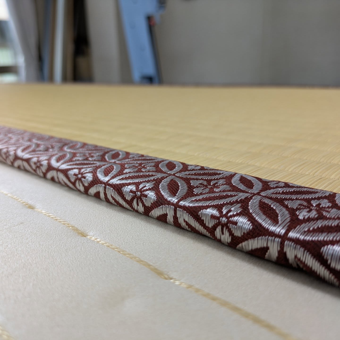 畳縁は、高麗縁の 茶色の七宝柄です(先ほどの物は、金の七宝柄でした)