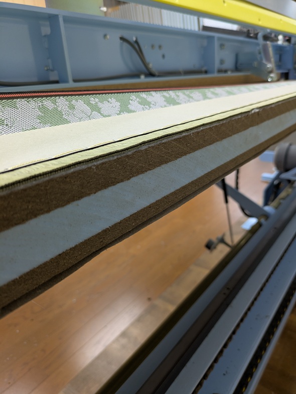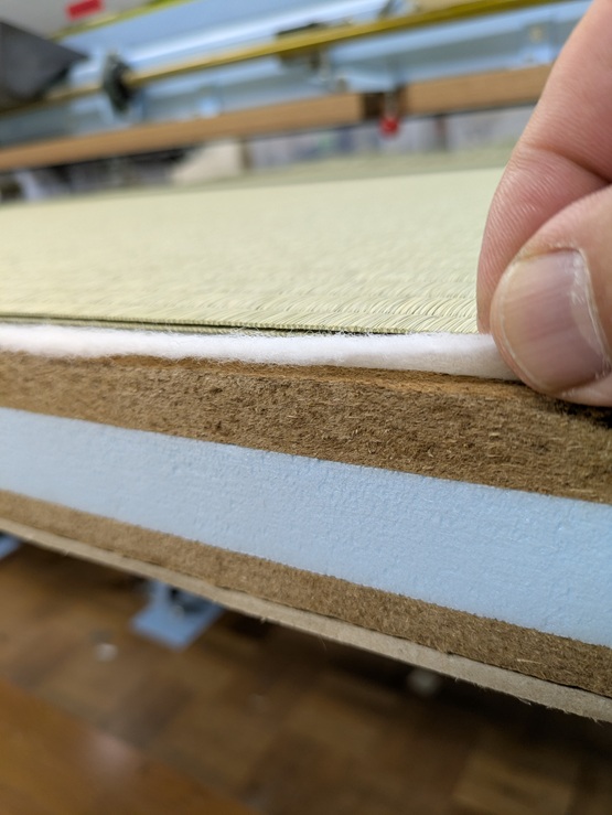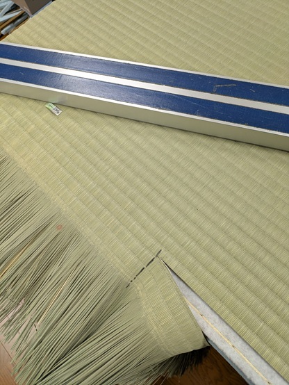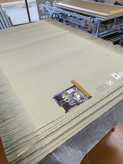 製作途中の畳。 機械の刃物の手入れもバッチリ。裁断面もスッキリです。
