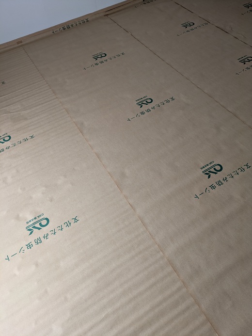 畳をめくり上げ、防虫シートを施工。