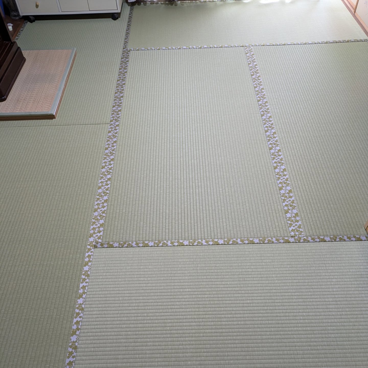 ダイケン健やかおもて(和紙の畳表)と桜柄の畳縁を選んでいただけました。